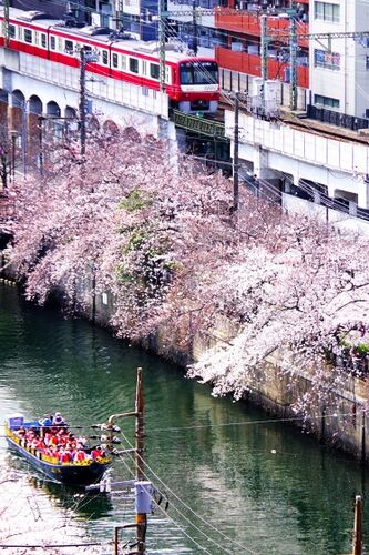 桜の開放的な美の誘引に耐えきれず クルーズ船を楽しむ人が大勢いました。