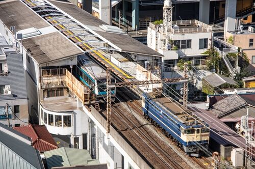 EF65を撮ろうと山手の山に登ったというのに北行の根岸線と被ってしまい「あ~あ」だった翌日昨日は、運が悪かっただけ今日こそはと再挑戦。 遠くにEF65が現れたそしてゆっくりと近寄って来る 眼下では、北行の根岸線の列車が音を立て石川町駅に滑り…
